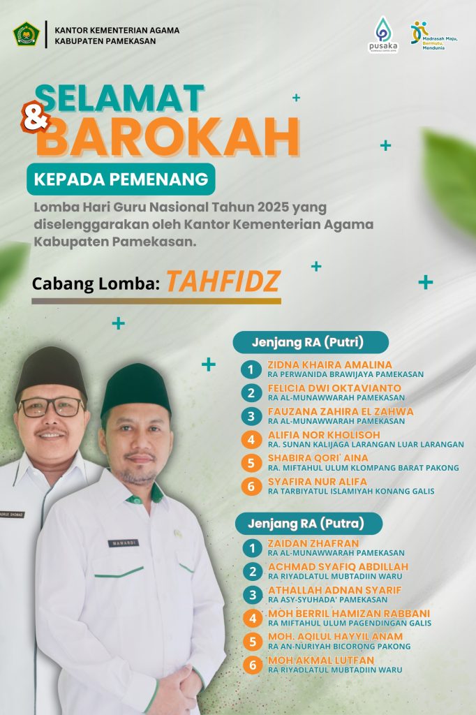 Tahun ini Kemenag kabupaten Pamekasan kembali menyelenggarakan berbagai jenis lomba untuk siswa dan guru dalam rangka memperingati Hari Guru Nasional (HGN) tahun 2025.